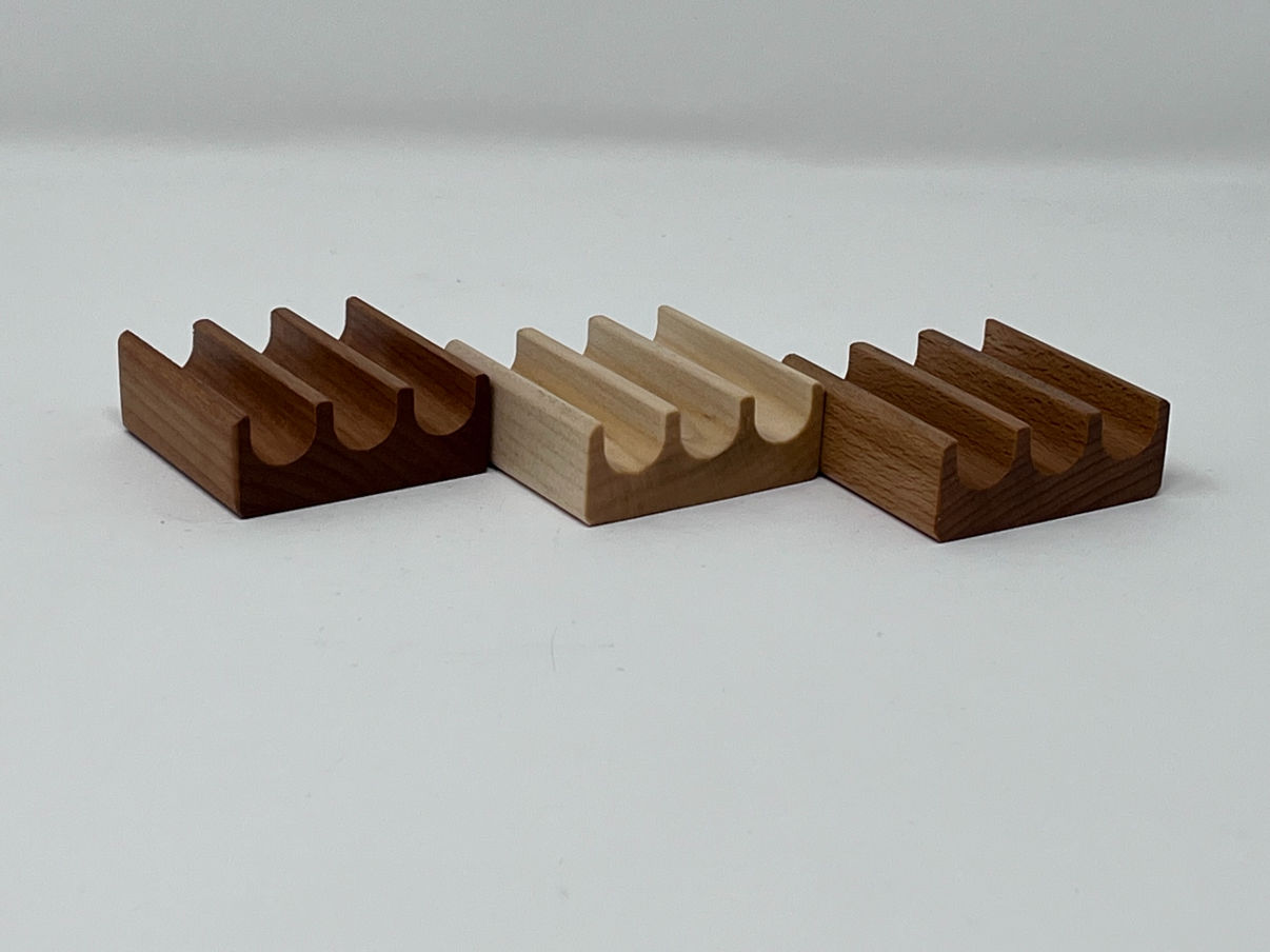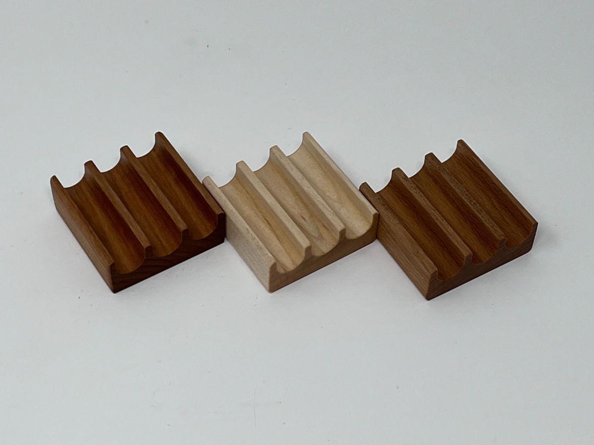 Each other has a mix of soap dishes made of different hardwood. Let your customer pick out their favorite dish to go with their handmade soap bar!